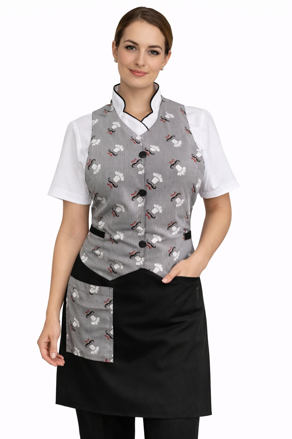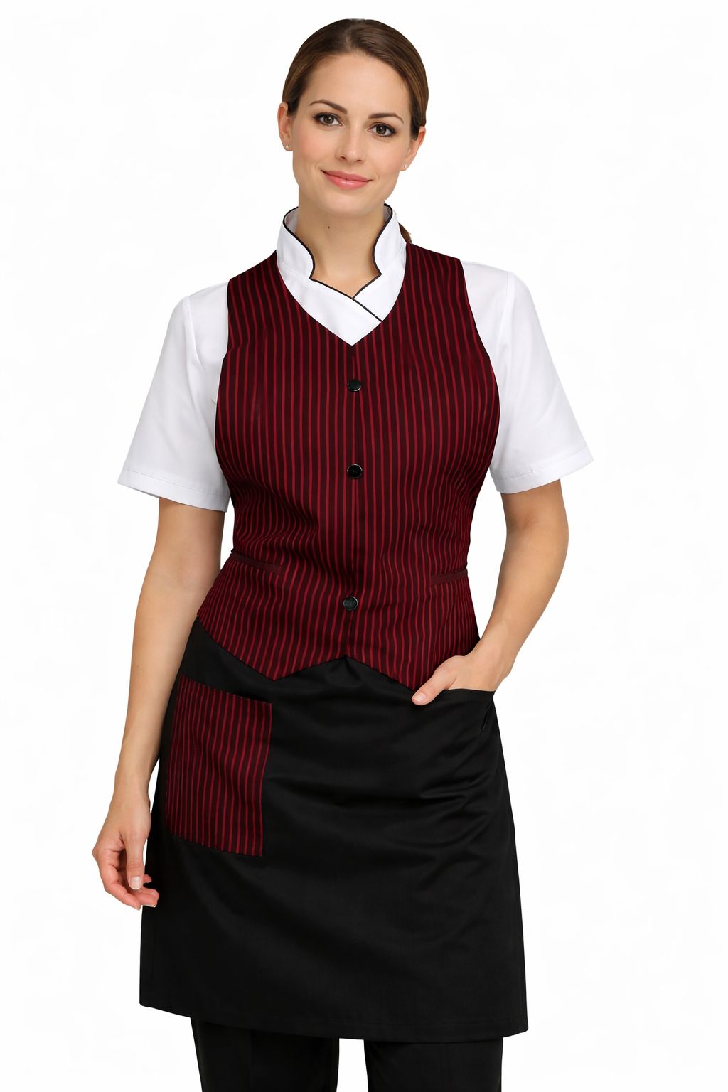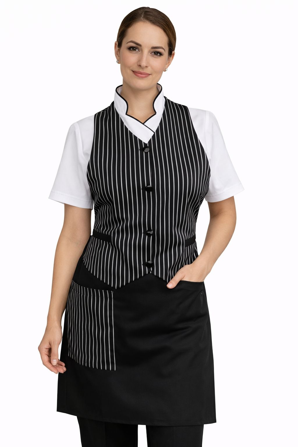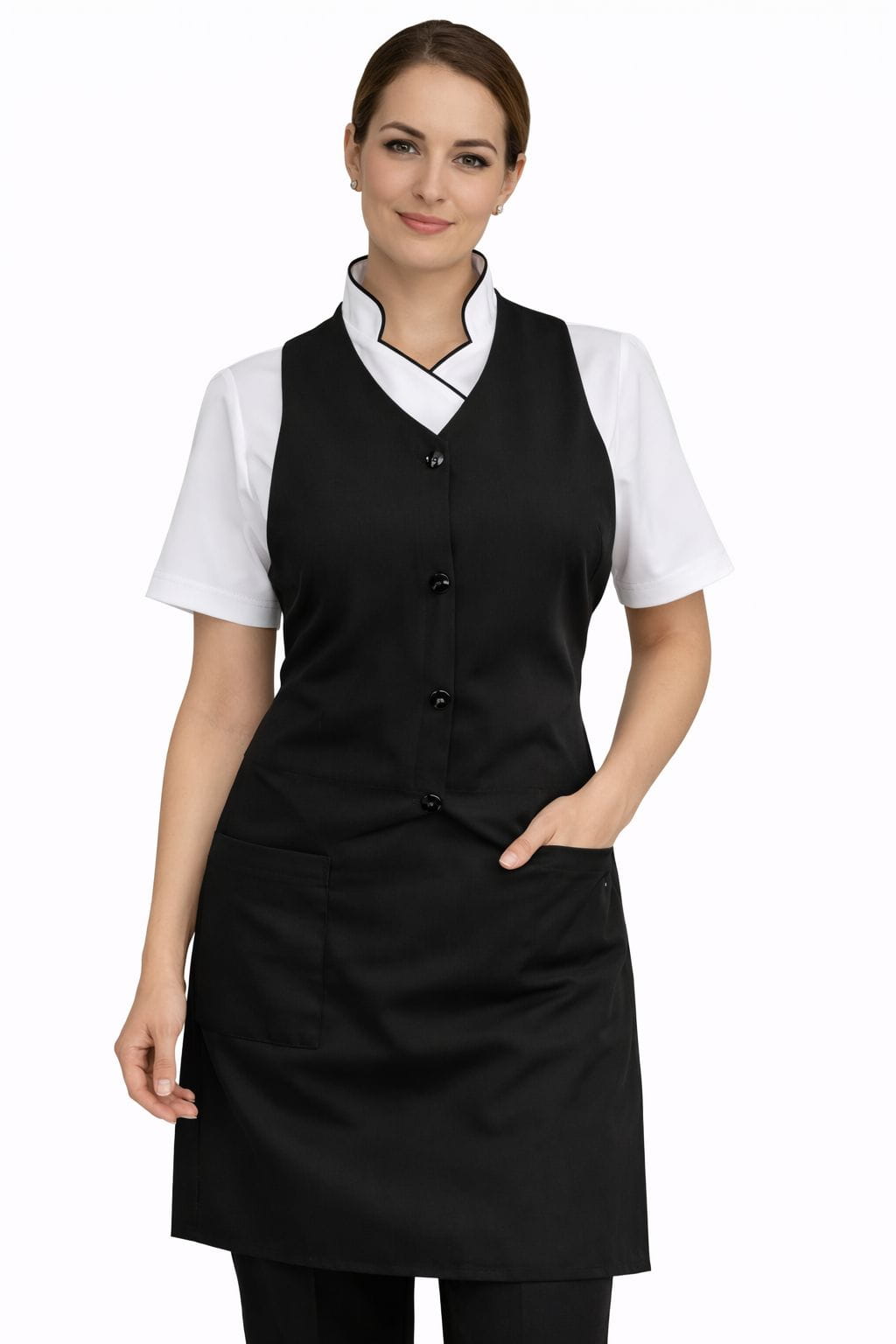 Es perfecto para sectores como gastronomía, alimentos, limpieza, salud y estética. Su diseño ergonómico garantiza libertad de movimiento y presentación profesional.